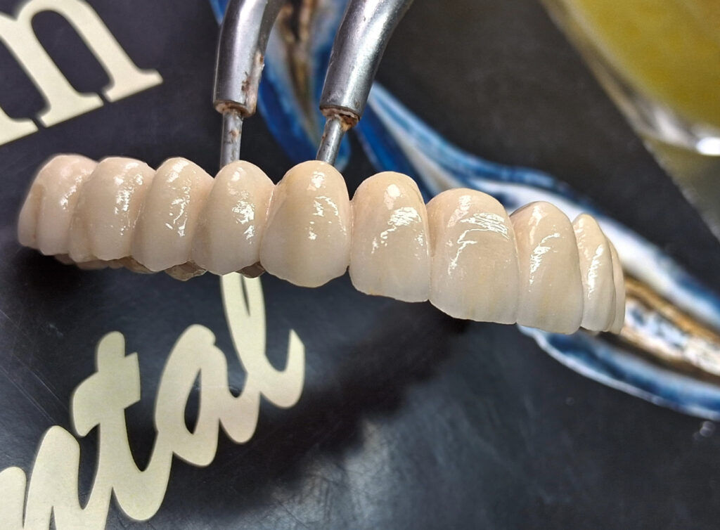 Arcada completa monolítica de zirconio sobre interfases 1.675€ 5 días.